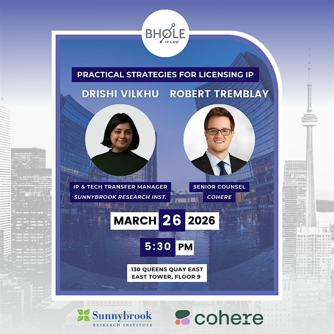 Robert Tremblay, who practices commercial licensing at Canada’s leading AI company, and Drishi Vilkhu, who manages IP and technology transfer at a leading hospital research institute, will draw on their experience in commercial software licensing and institutional technology transfer to discuss strategies for structuring license agreements, navigating complex negotiations, and building successful partnerships.