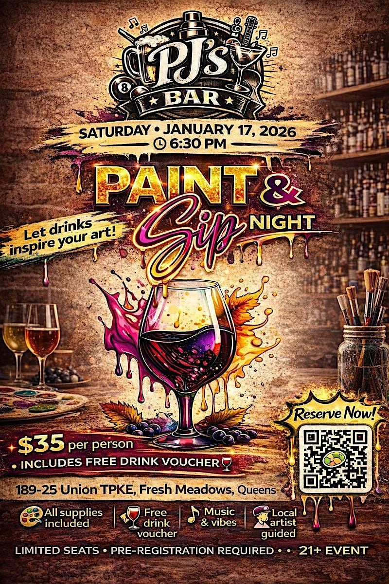 Get ready to unleash your inner artist while sipping on some drinks at our Paint & Sip Night - a night full of creativity and fun!