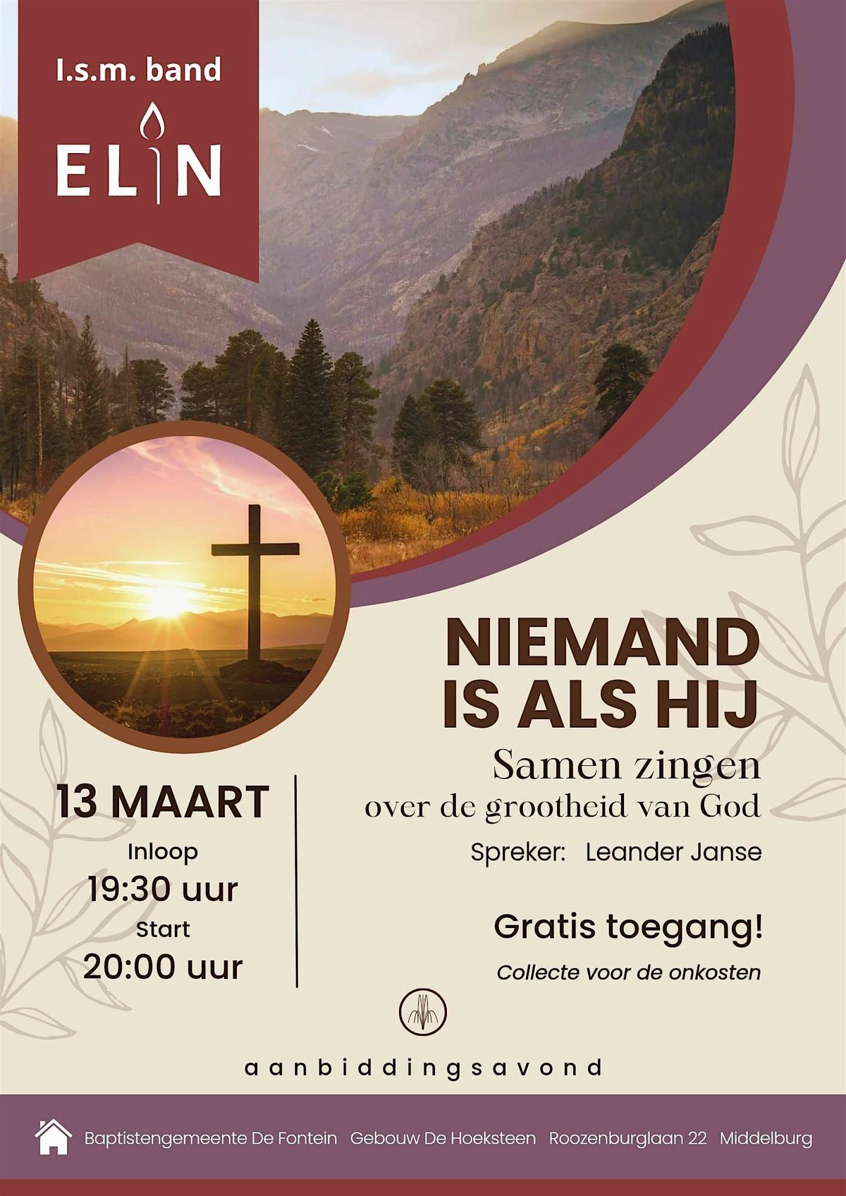 De band Elin begeleidt de praise-avond. Spreker: Leander Janse.About this Event