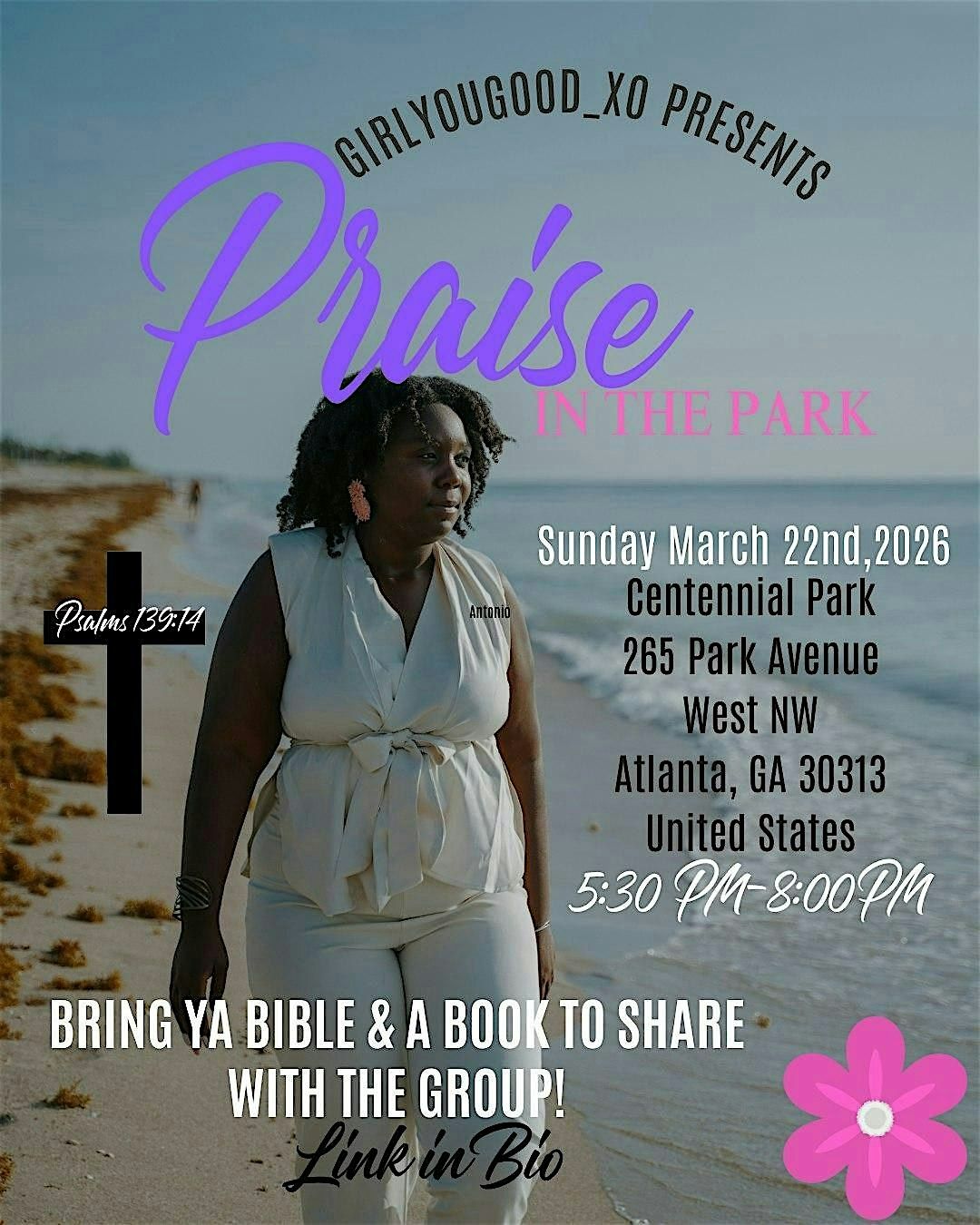 Listennnnnn, we all need encouragement right now! Let's jam out through prayer, worship, and eating the Word of God! Mats will be supplied and so will water and fresh food! See yall soon. Oh this is MANDATORY FOR MY CASELOAD!!!!!! If you need a ride/hotel, please let me know. All are invited and welcomed!