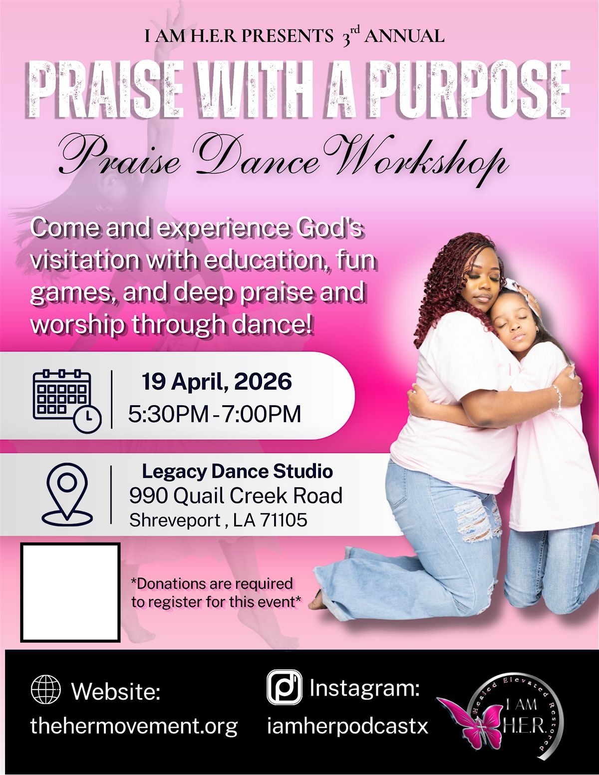 Join us on April 19, 2026 at 5:30 PM for a fun and uplifting praise dance workshop. Whether you're a beginner or a pro, this is your chance to express yourself and connect with others through dance. Don’t miss out on an inspiring time filled with worship and purpose!
