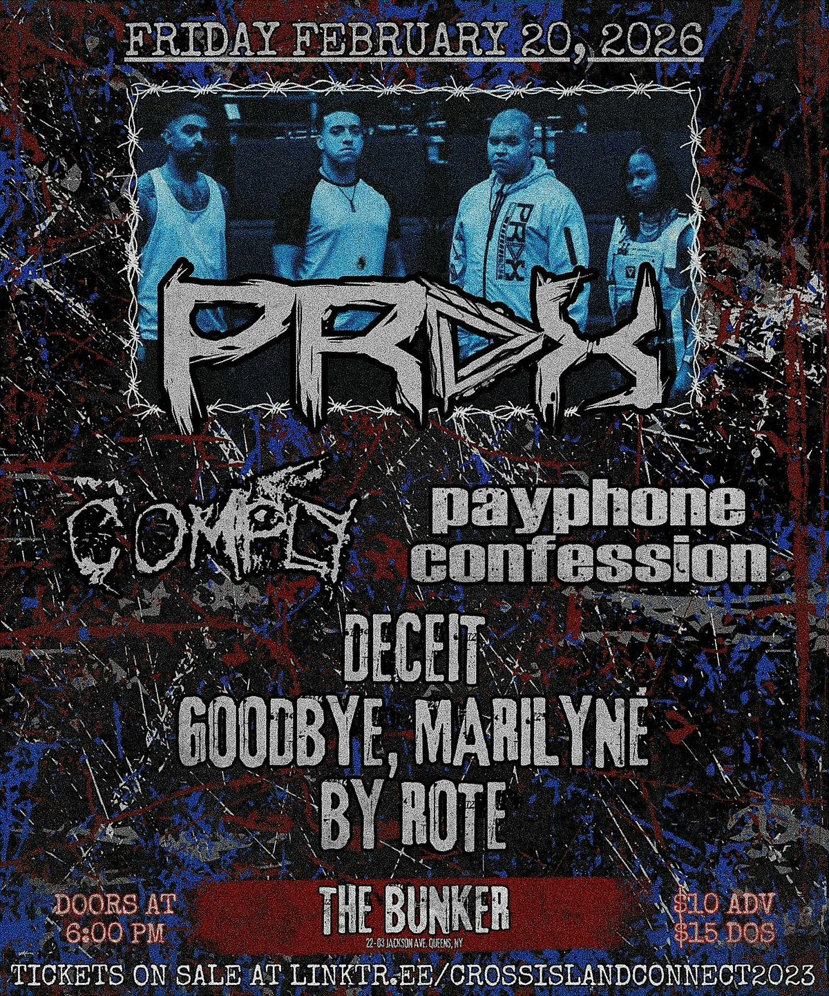 CROSS ISLAND CONNECT presents: PRDX, COMPLY, PAYPHONE CONFESSION, DECEIT, GOODBYE MARILYNE, BY ROTE @ THE BUNKERAbout this Event