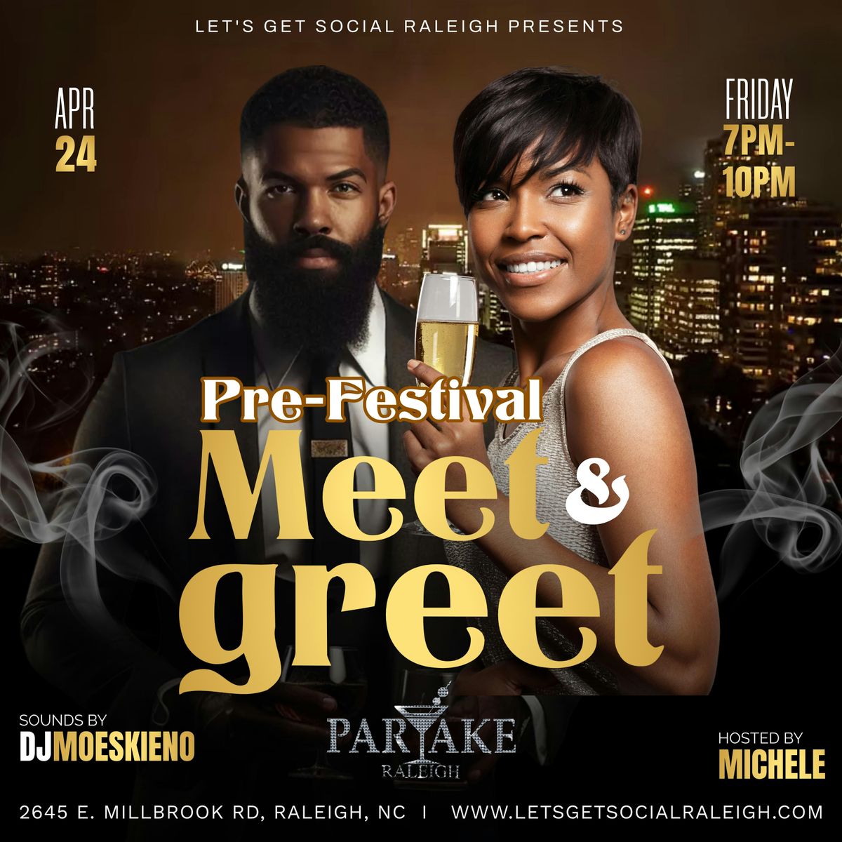 Join us on Friday, April 24, 2026 from 7PM – 10PM at Partake for an evening designed to help you connect, vibe, and get in the spirit before the big day.