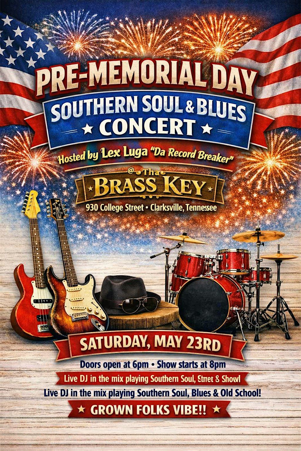 Join us for an unforgettable night of soulful tunes and bluesy vibes as we kick off the Memorial Day weekend in style. This in-person event brings together some amazing artists ready to fill the air with heart and soul. Grab your friends, bring your good vibes, and get ready to groove to the hottest Southern soul and blues sounds around. Don’t miss out on the fun!
