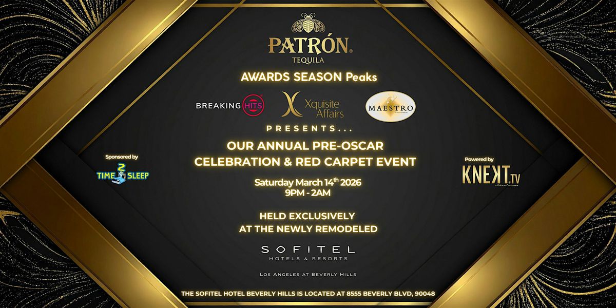 You're cordially invited to an unforgettable evening that captures the glamour and excitement of Hollywood's most prestigious night: the Annual 2026 Pre-Oscar Red Carpet and Event, presented by Xquisite Affairs, Maestro Entertainment, Breaking Hits, and PATRON Tequila.