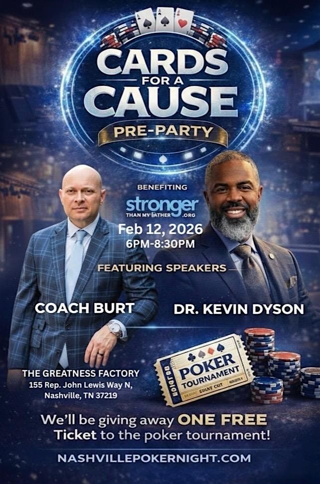 Join us for an exclusive Nashville pre-party to Cards for a Cause—an inspiring evening of connection, powerful speakers, and the opportunity to receive a FREE ticket to Cards for a Cause, benefiting Stronger Than My Father.