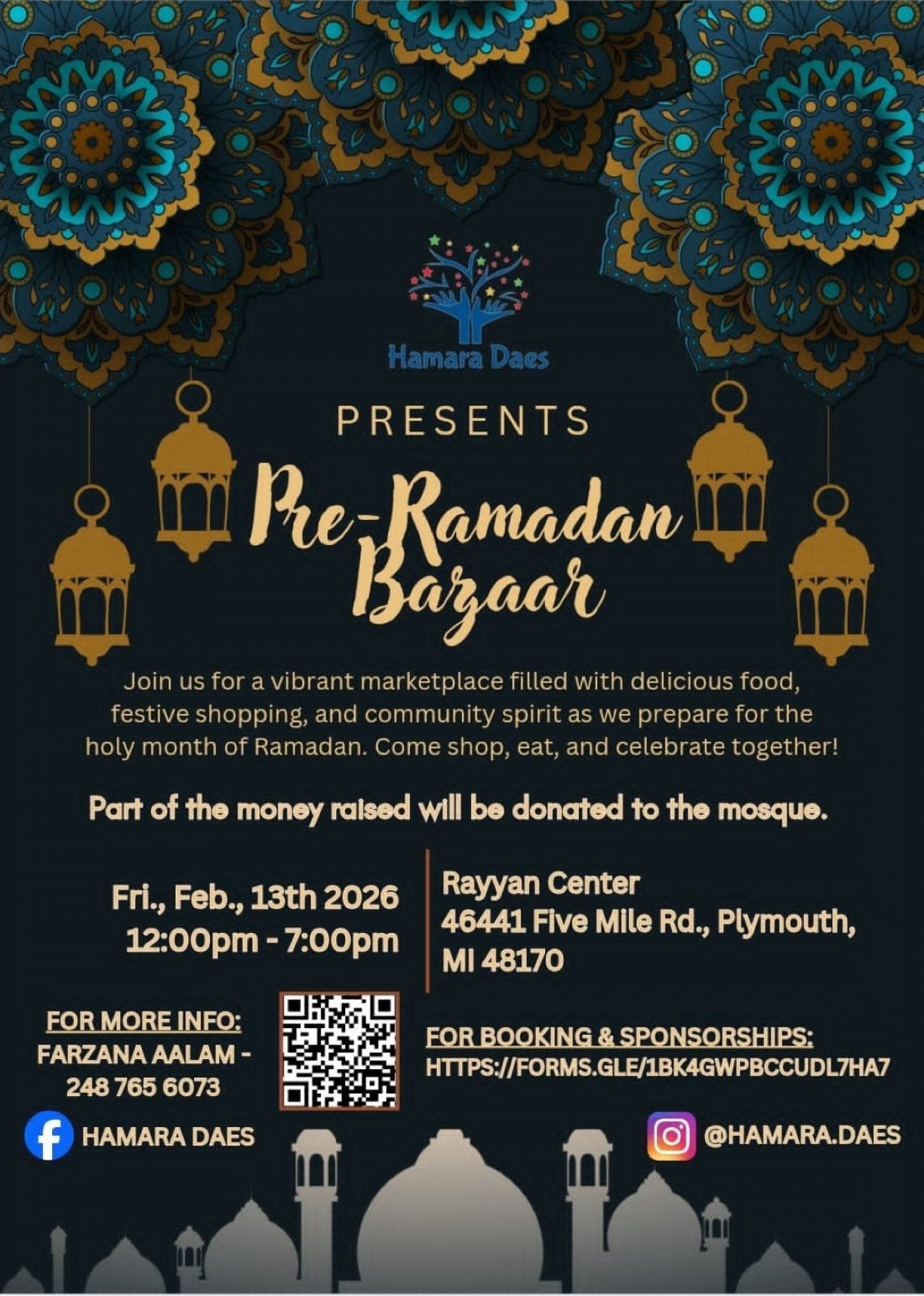 Join Hamara Daes for an evening of festive shopping, delicious food, and beautiful community vibes as we prepare our hearts for Ramadan