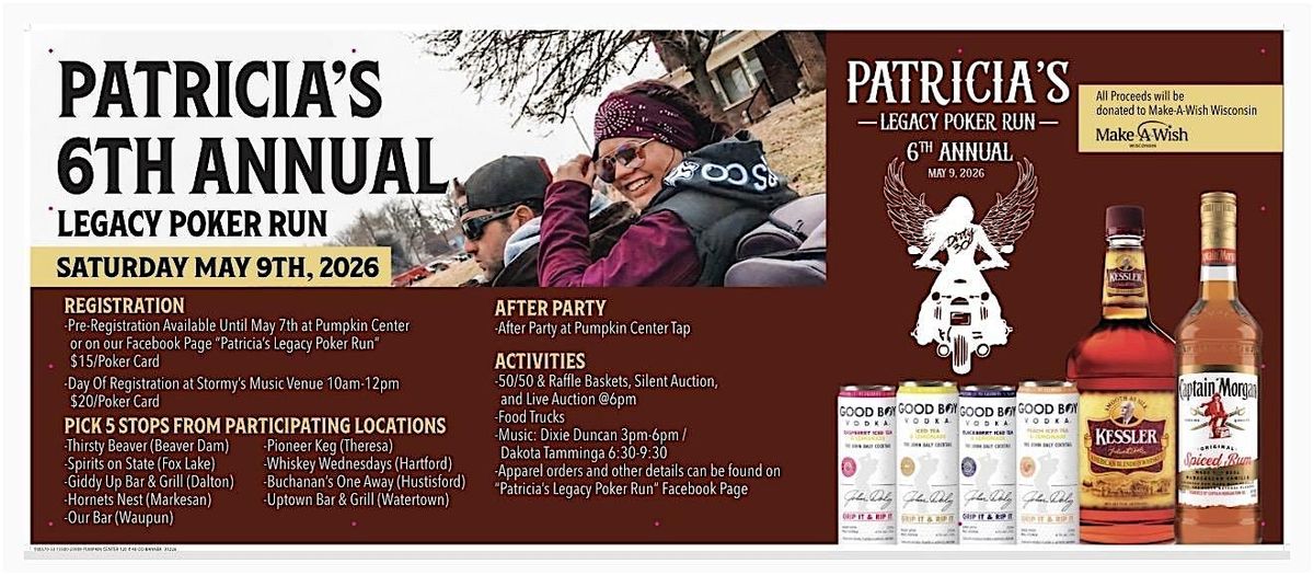 Carrying on Patricia’s Legacy with our charity Poker Run benefiting Make-A-Wish Wisconsin.About this Event