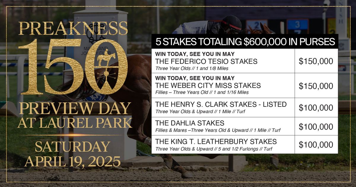 📍 Location: 39.1051, -76.8337🌟 Be part of history at Preakness Preview Day Race Day Buffet, an extraordinary gathering that will captivate your imagination! 🏛️ The prestigious Laurel Park in Laurel, MD sets the stage for an unforgettable experience on April 18th, 2026 at 04:00 PM. ✨ They are bringing together the finest elements of entertainment and innovation to create moments that will take your breath away. From the moment you arrive, you'll be immersed in an atmosphere of wonder and excitement. 🎯 This carefully planned event ensures every guest experiences something truly special. 🎊 Early booking is recommended for this must-attend event of the season!