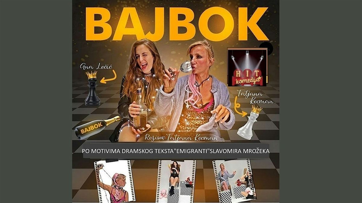 Predstava BAJBOK, nastala po motivima drame „Emigranti“ Slavomira Mrožeka, donosi savremenu komediju o životu u tuđini. U švedskom stanu, tokom pandemijskog dočeka Nove 2020. godine, susreću se dve žene istog porekla sa Balkana, ali potpuno različitih svetova. Njihova prisilna koegzistencija postaje duhovit, ali nemilosrdan obračun sa iluzijama, snovima i strahom od neuspeha. I tada shvataju da nisu pobegle, jer nisu ni stigle. Zato, smej se dok čekaš budućnost.