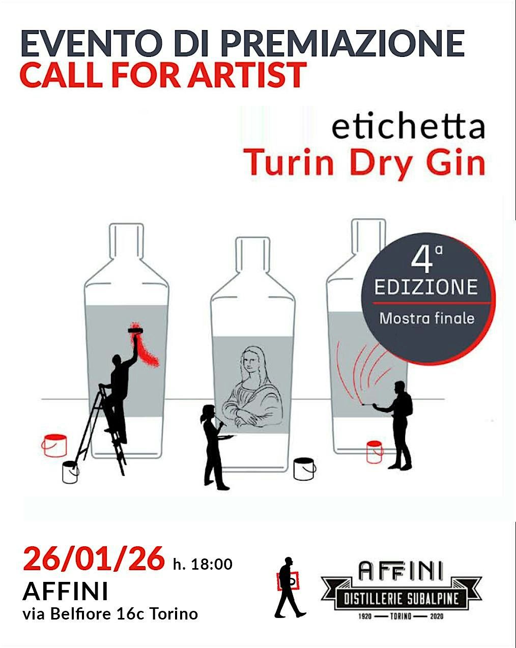 Siamo giunti al termine della Call for Artist Turin Dry Gin – 4th Edition! La premiazione si terrà lunedì 26 gennaio alle h 18 presso il locale Affini a Torino.