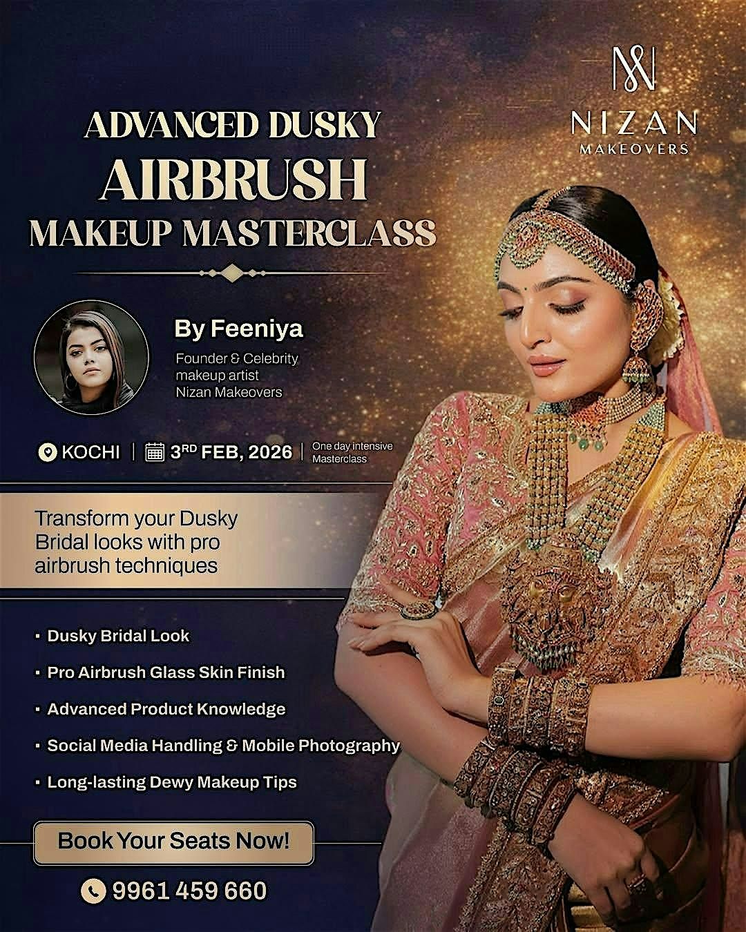 Professional airbrush bridal makeup masterclass focusing on flawless base, bridal skin prep, long-lasting finish, and pro techniques.About this Event