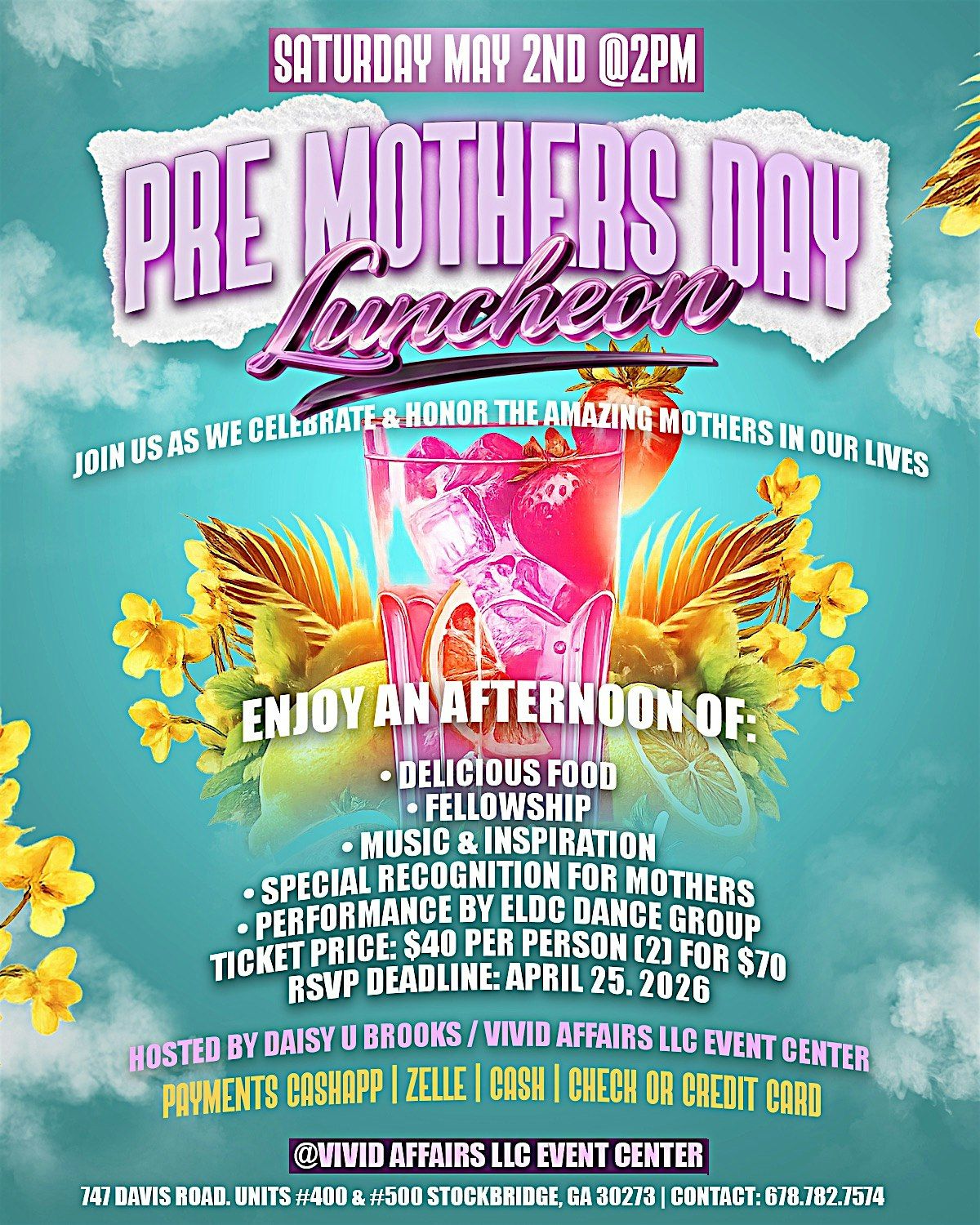 Come celebrate that special mother with delicious lunch, music, and a special performance.