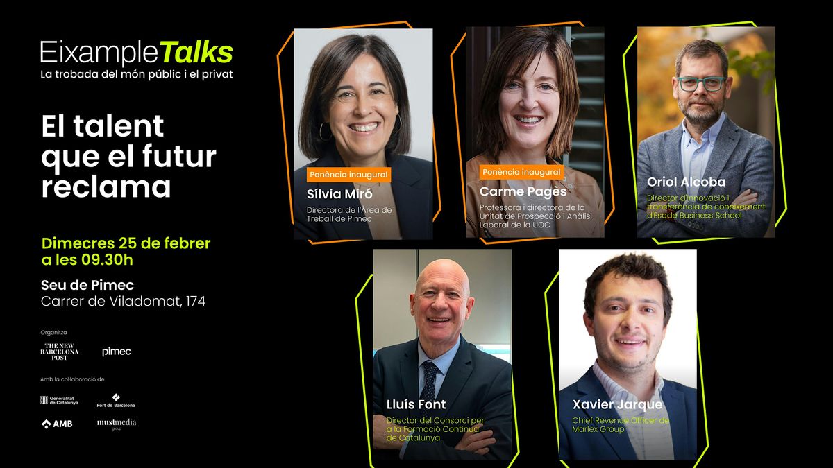 Aquest desafiament serà el fil conductor de la sessió Eixample Talks: El talent que el futur reclama, que tindrà lloc el pròxim 25 de febrer a les 9.30 h a la seu de Pimec (Viladomat, 174, Barcelona). Serà la primera sessió de l’any del cicle impulsat per Pimec i The New Barcelona Post amb l’objectiu de fomentar el diàleg i la col·laboració entre sectors per afrontar conjuntament els grans reptes econòmics, socials i urbans de la ciutat. L’aforament per assistir-hi és limitat i requereix inscripció prèvia a través de l’enllaç.