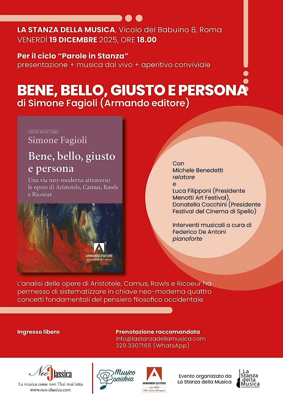 Presentazione del saggio filosofico di Simone Fagioli dal titolo "bene, bello giusto e persona" con musica dal vivo e aperitivo conviviale.About this Event