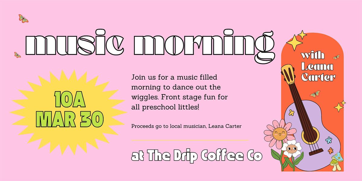 Fun interactive music morning for preschool age kids! Led by Leana Carter. One ticket needed per child. Parents do not need a ticket. Please arrive 5-10 minutes early to check in.