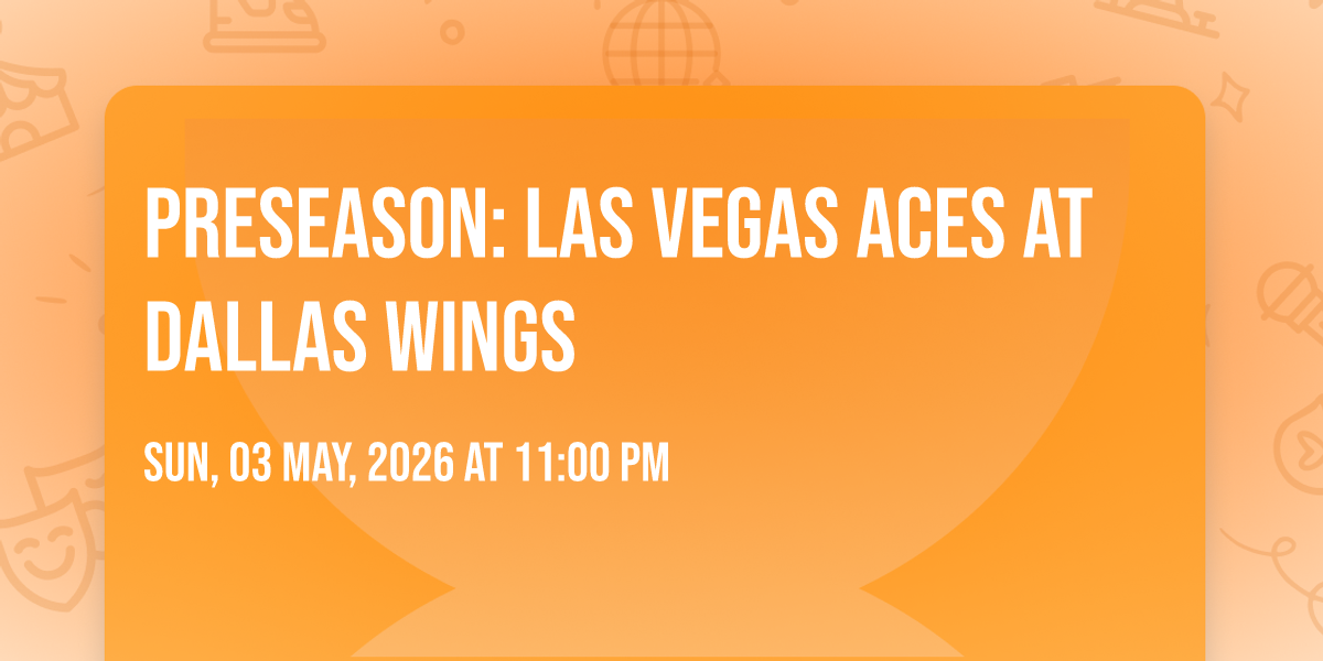 📍 Location: 30.2805, -97.7318🎉 Welcome to Preseason: Las Vegas Aces at Dallas Wings, where dreams come alive and possibilities are endless! 🏛️ Join us at Moody Center ATX in the heart of Austin, TX for an event that defies expectations. 📅 On May 3rd, 2026 at 11:00 PM, be part of something truly extraordinary as we bring together innovation, entertainment, and pure magic. ✨ Every aspect has been carefully designed to ensure an unforgettable experience for all our guests. Whether you're seeking adventure, inspiration, or simply a break from the ordinary, this event promises to deliver beyond your wildest dreams. 🎊 Prepare for a journey into the extraordinary!