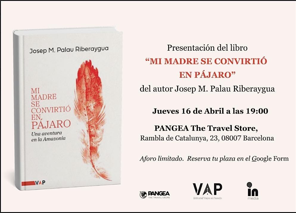 El próximo jueves 16 de abril a las 19:00 h en Pangea The Travel Store se presentará el nuevo libro del periodista Josep M. Palau Riberaygua, Mi madre se convirtió en pájaro, publicado por Viajes al Pasado.