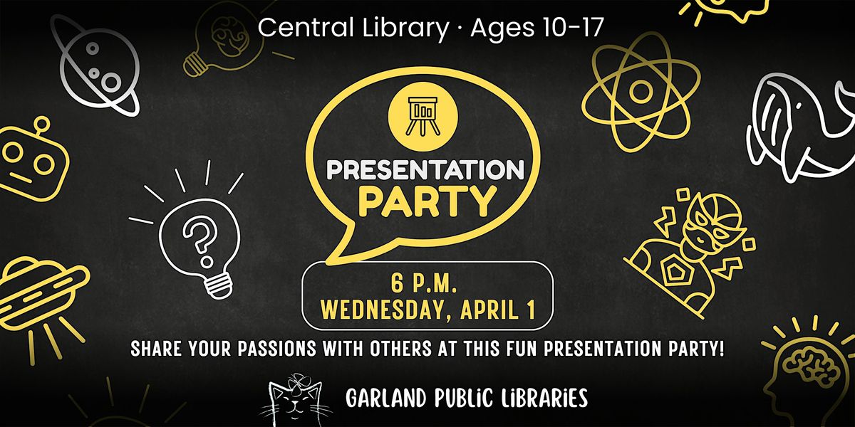 Got a topic or hot take you can’t stop thinking about? Share your passions with others at this fun presentation party!