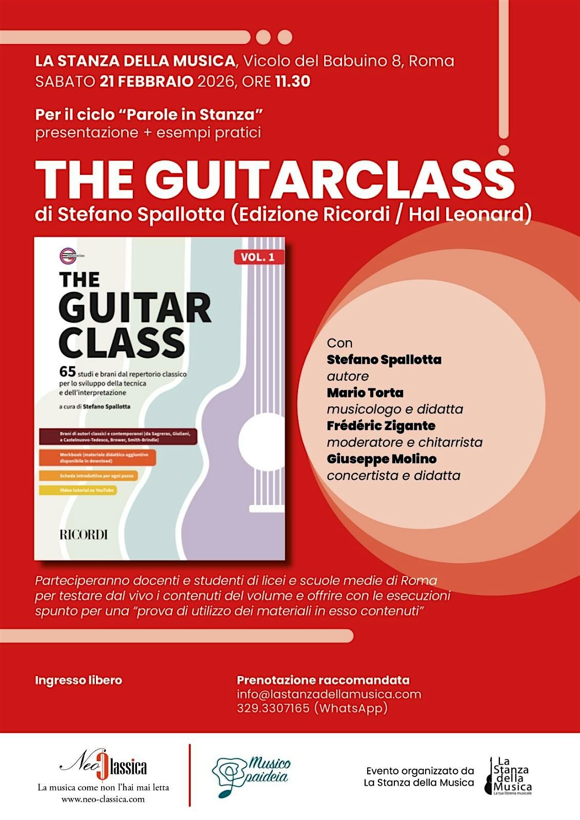 ✨ Sabato 21 febbraio alle ore 11:30 ti aspettiamo per una mattinata unica insieme al chitarrista Stefano Spallotta, che presenterà la sua nuova pubblicazione "The Guitar Class", una nuova metodologia dedicata alla chitarra classica! 🎵