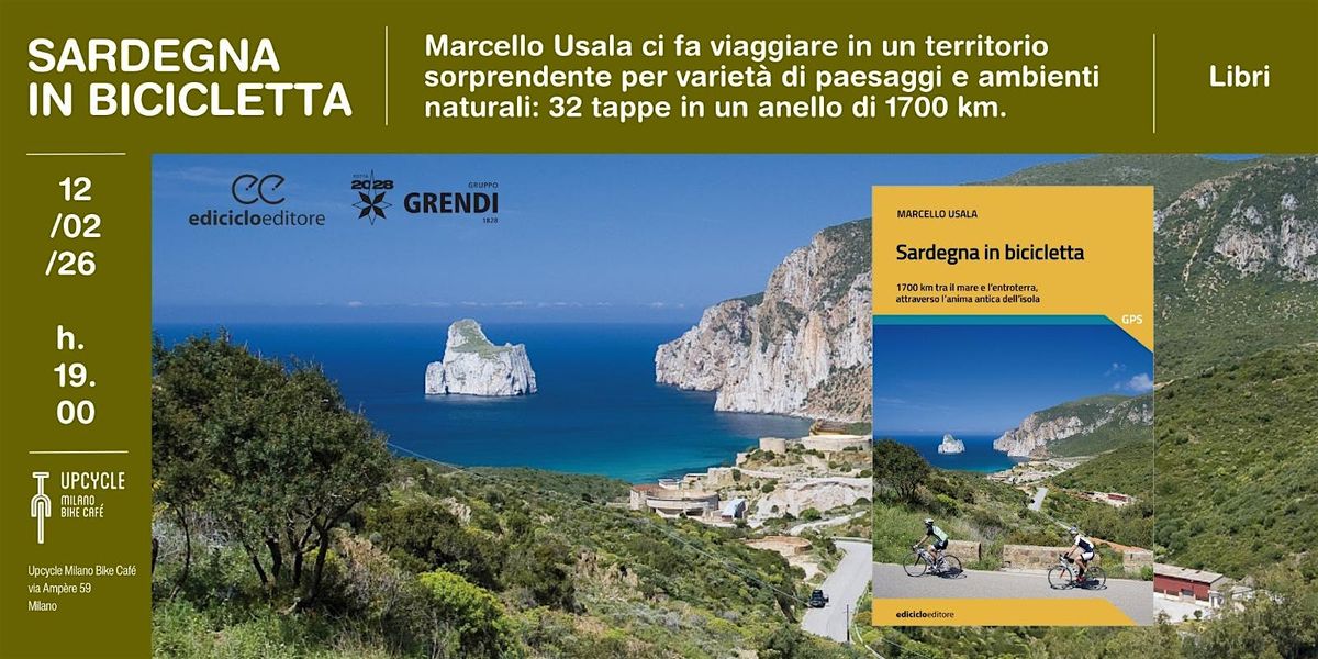 Il 12 febbraio da Upcycle ci saranno l’autore Marcello Usala (esperto di viaggi in bicicletta e appassionato di outdoor, da oltre vent’anni si dedica a livello professionale all’organizzazione di tour cicloturistici in Sardegna e nel Mediterraneo), Costanza Musso (amministratrice delegata del Gruppo Grendi) e la giornalista Paola Piacentini; introduce Roberto Peia, socio fondatore di Upcycle Milano Bike Café.