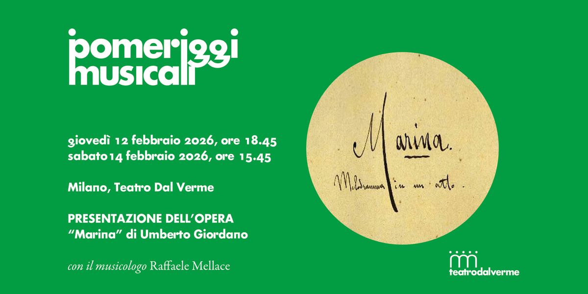 È uno degli appuntamenti più attesi del mondo musicale internazionale per questi primi mesi del 2026: la prima esecuzione assoluta di Marina – opera giovanile di Umberto Giordano nell’edizione critica a cura di Andreas Gies – in programma il 12 e il 14 febbraio 2026 al Teatro Dal Verme di Milano per l’81ª Stagione concertistica dei Pomeriggi Musicali, grazie alla collaborazione con l’Edizione Nazionale delle Opere di Umberto Giordano / LIM-Libreria Musicale Italiana. Un’esecuzione in forma di concerto che sarà anche registrata dall’etichetta discografica Decca.
