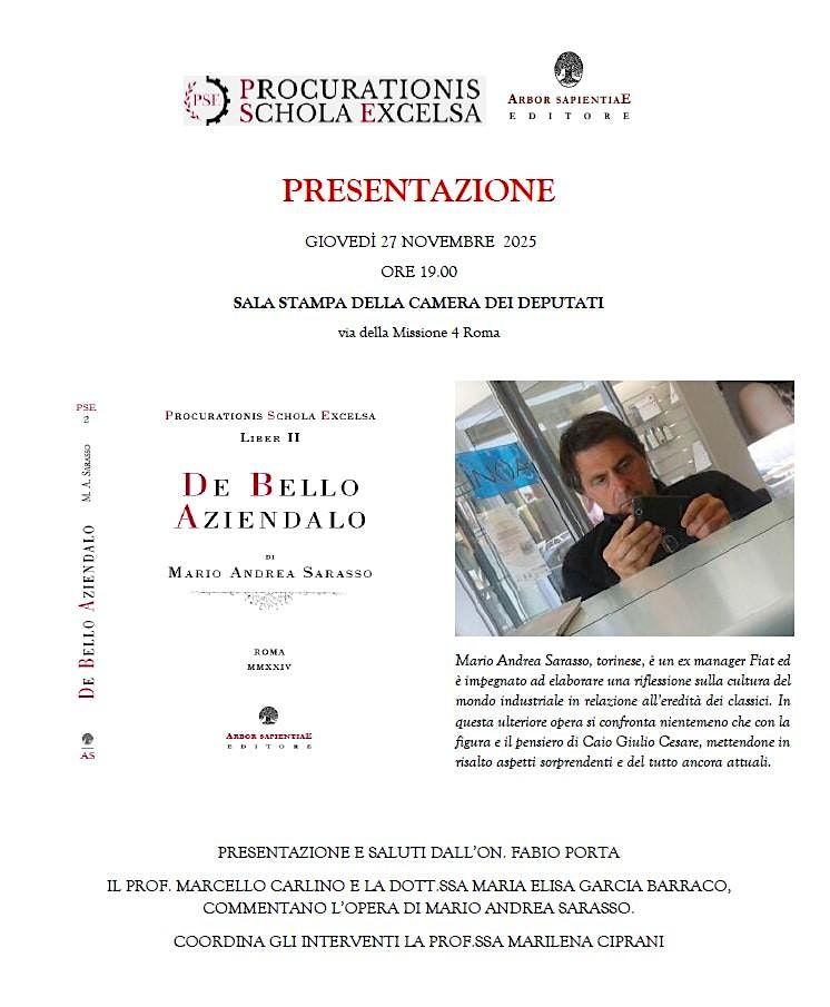 Mario Andrea Sarasso, torinese, è un ex manager Fiat ed è impegnato ad elaborare una riflessione sulla cultura del mondo industriale in relazione all’eredità dei classici. In questa ulteriore opera si confronta nientemeno che con la figura e il pensiero di Caio Giulio Cesare, mettendone in risalto aspetti sorprendenti e del tutto ancora attuali.