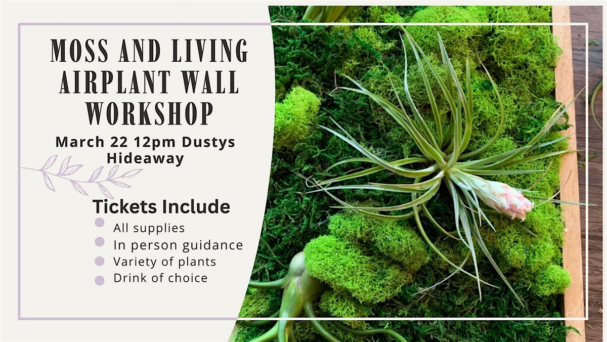 Join us at Dusty’s Hideaway on March 22, 2026 at 12:00 PM (Pacific Time) for a fun, hands-on workshop! You’ll get to create your own preserved moss and living air plant wall. It’s a cool way to bring some green vibes into your space without the hassle. Perfect for plant lovers or anyone wanting a chill creative afternoon. Can’t wait to see you there!