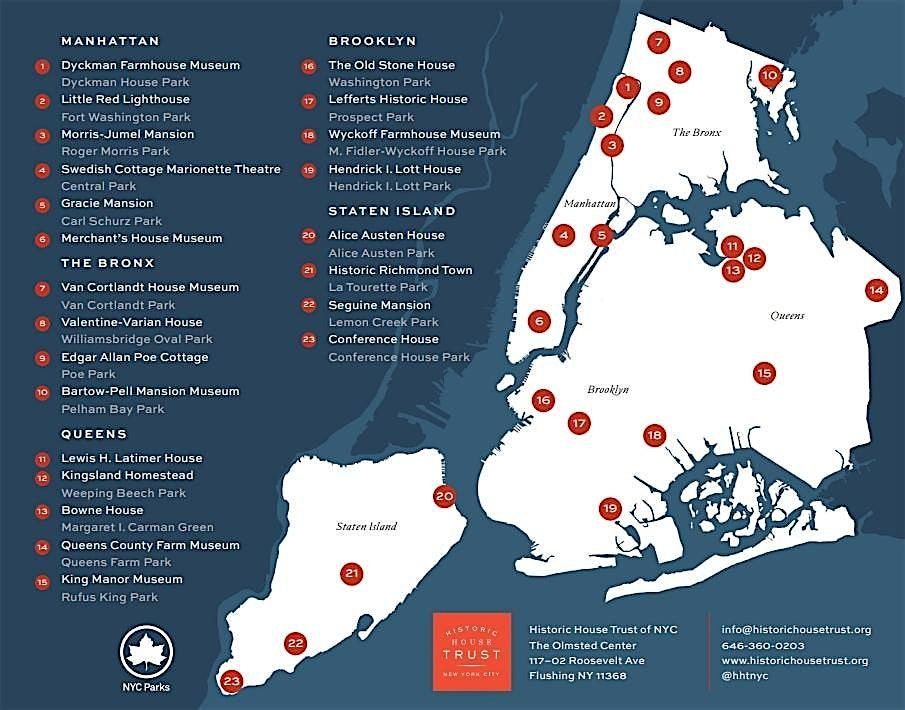 In close collaboration with over 20 independent, community-based nonprofit organizations that operate the sites daily, the Historic House Trust ensures these publicly-owned historic houses remain vibrant cultural resources—connecting neighborhoods across all five boroughs with over 400 years of New York City history.