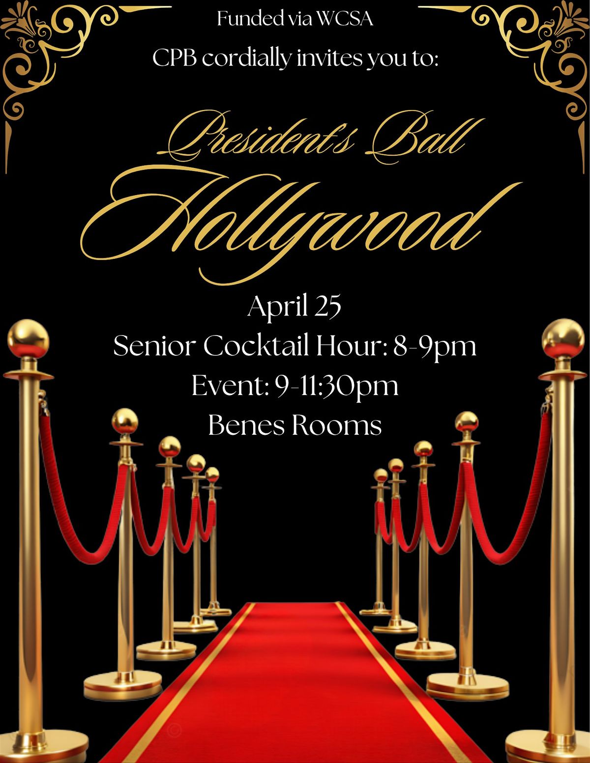CPB Presents our 2026 President's Ball: Hollywood. Adorn yourself in glitz & glamour as you walk the red carpet at this grand event!Agenda