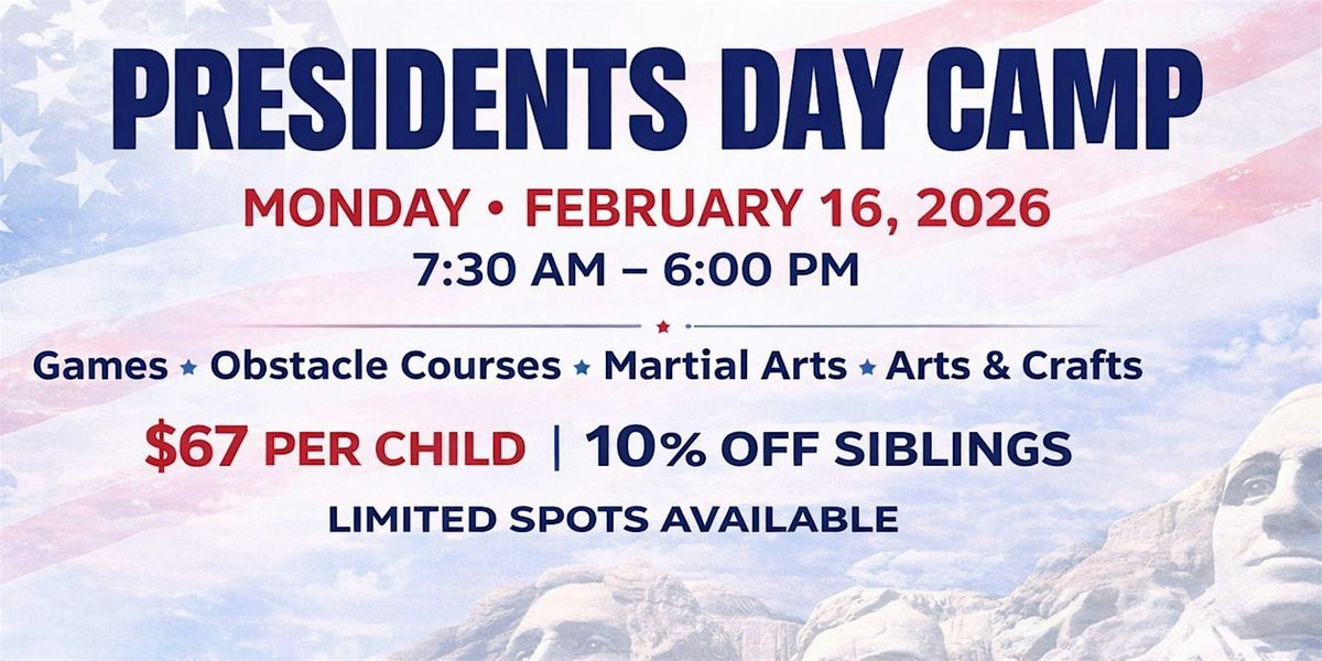 Get ready for a fun-filled in-person adventure this Presidents Day! Our camp is packed with exciting activities, games, and new friends. Whether you're a history buff or just looking for a cool way to spend the day, this is the place to be. Don't miss out on the fun and learning all about our nation's leaders while having a blast. Come join the excitement and make some unforgettable memories!