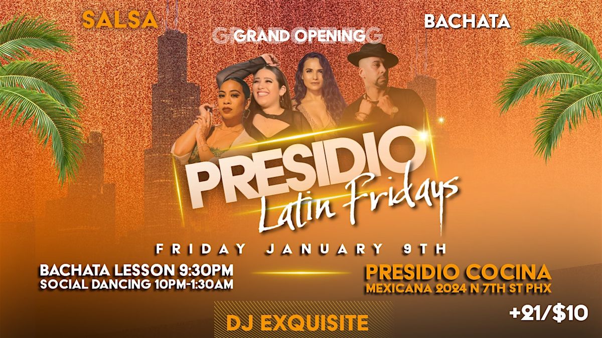 🔥We are excited to announce Phoenix’s newest Latin Night: Presidio Fridays! Join DJ Exquisite for an unforgettable night of the best in Salsa and Bachata!