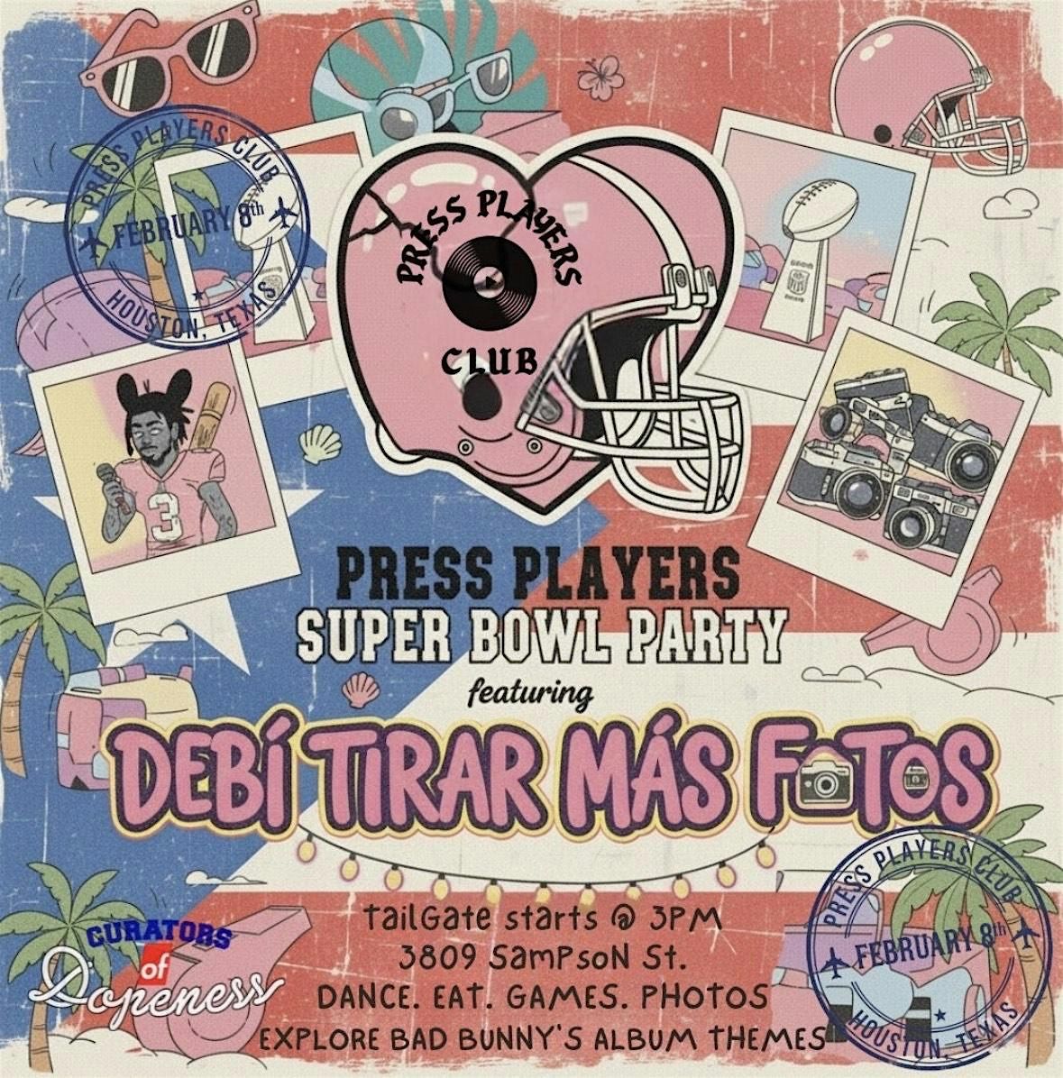 Hosted in conjunction with Gracie Chavez of Bombon Houston join us for DeBí TiRAR MáS FOToS: The Listening Experience + Super Bowl Tailgate. We’re blending the nostalgia of Benito’s newest masterpiece with the biggest game of the year. We will take a deep dive into the musical history of Puerto Rico and its influence on DTMF with sounds from DJ Boricua Soul along with social commentary leading up to the Halftime performance by Benito, followed by a group discussion. Expect heavy bass, Plena vibes, and the best tailgate in HTX. Bring your memories!
