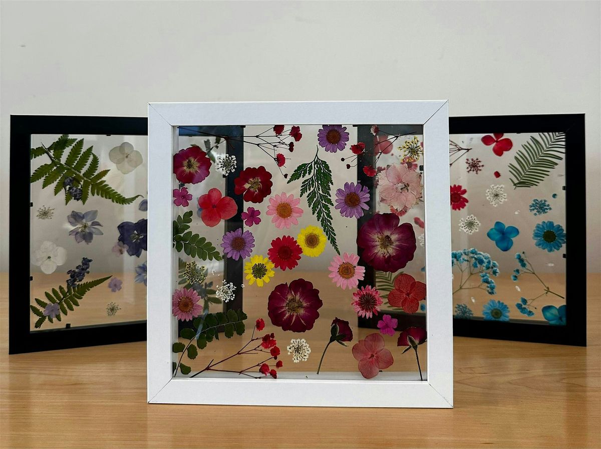 Choose from a big selection of pressed florals at the studio. Larger size may take longer than an hour.