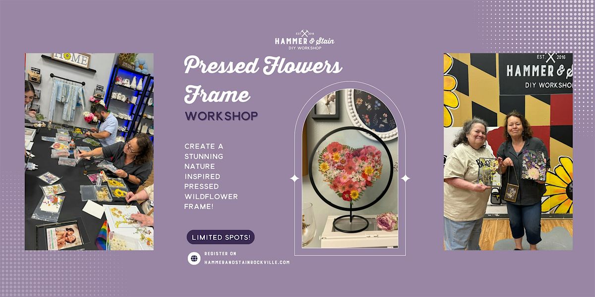 Create a stunning nature inspired pressed wildflower frame! Join us at Hammer & Stain Rockville for a special workshop where you’ll craft a custom frame & floral design.