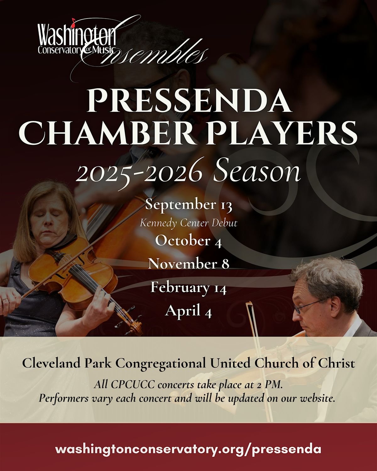 Join us for a powerful afternoon of chamber music with the acclaimed Pressenda Chamber Players, performing masterworks by beloved classical composers.