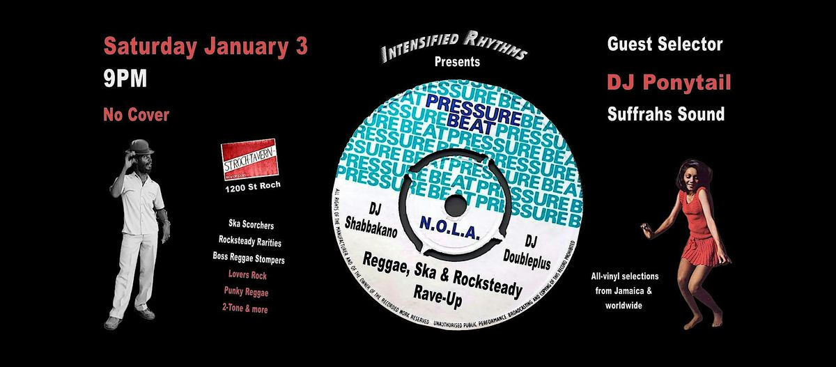 We’ve been spinning these tunes at parties on the East & West Coasts, Texas, the Midwest, Mexico and Puerto Rico. But now we’re bringing ‘em back home to NOLA, where our local radio stations were a huge influence on early Jamaican Blue Beat. Stop on through, all are welcome. Big tunes from the top to the very last drop!