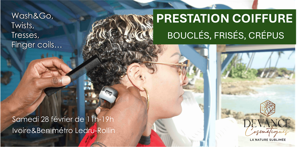 Tu cherches à sublimer ta crinière ? Rejoins-nous en présentiel pour une expérience coiffure unique, adaptée à la texture de tes cheveux. Notre expert est là pour révéler ta beauté naturelle avec des soins naturels sur-mesure et des styles qui déchirent ! wash&go, twists, twist-out, braid-out, tresses, finger coils....