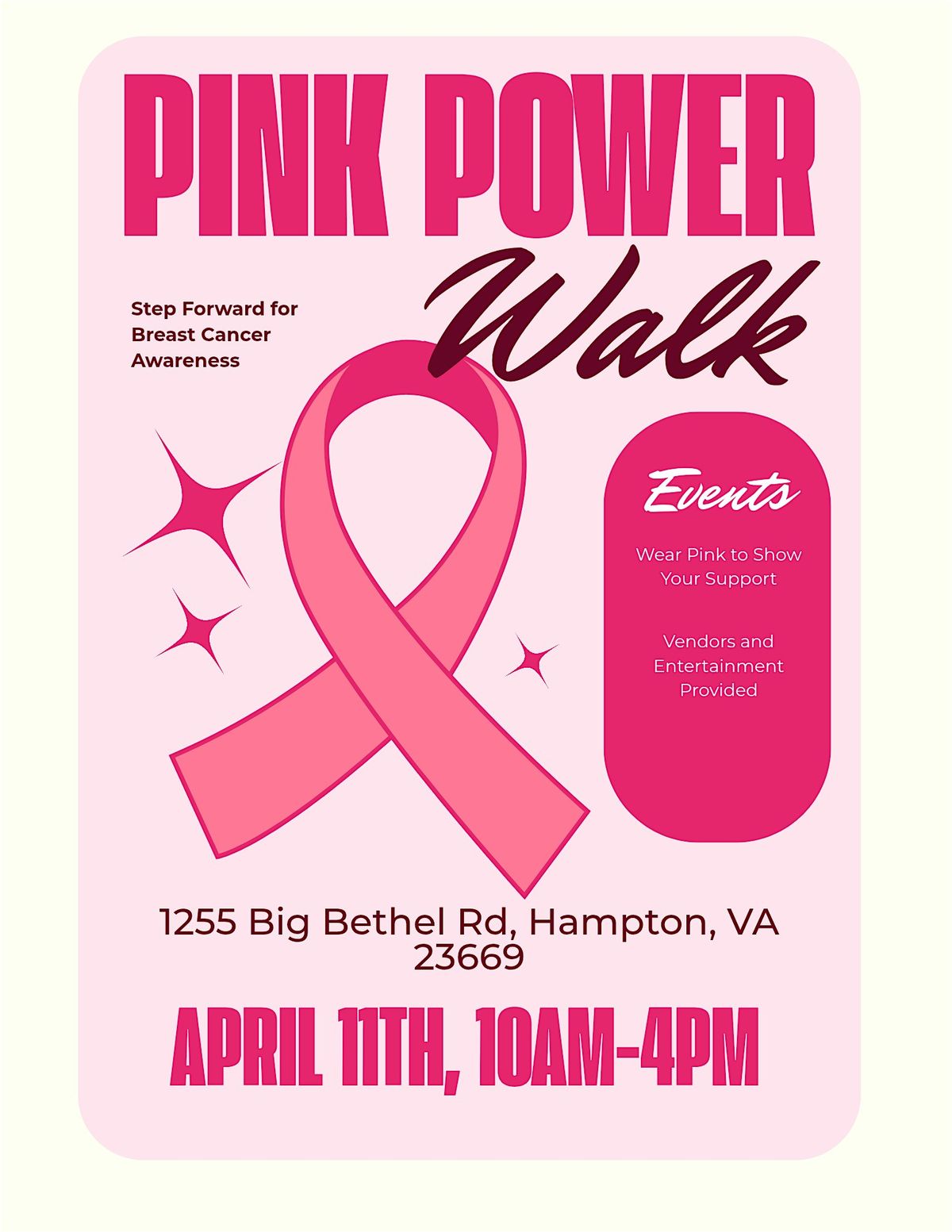 Pretty In Pink is hosting their 2nd Annual Breast Cancer Walk at Sandy Bottom Nature Park in Hampton on Saturday, April 11th at 10 am