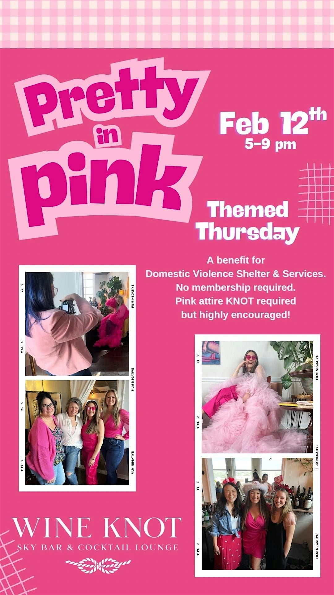 Pink outfits. Pink drinks. Big hearts. 💗 It’s Pretty in Pink Themed Thursday at Wine Knot! Dress the part, grab a cocktail, and sip with purpose while supporting a local domestic violence shelter. No membership required. Please bring a personal hygiene item or a low-denomination fast-food gift card to donate.