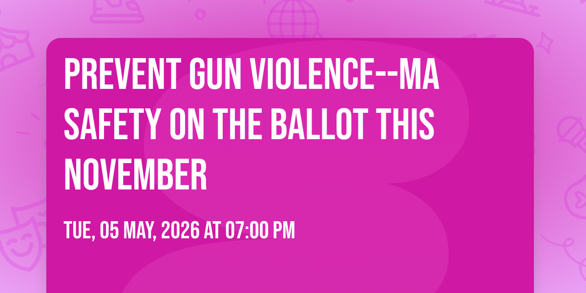 Grassroots4GunViolencePrevention meeting on how to keep MA Safe This November. Join us to learn about a critical MA ballot question.About this Event