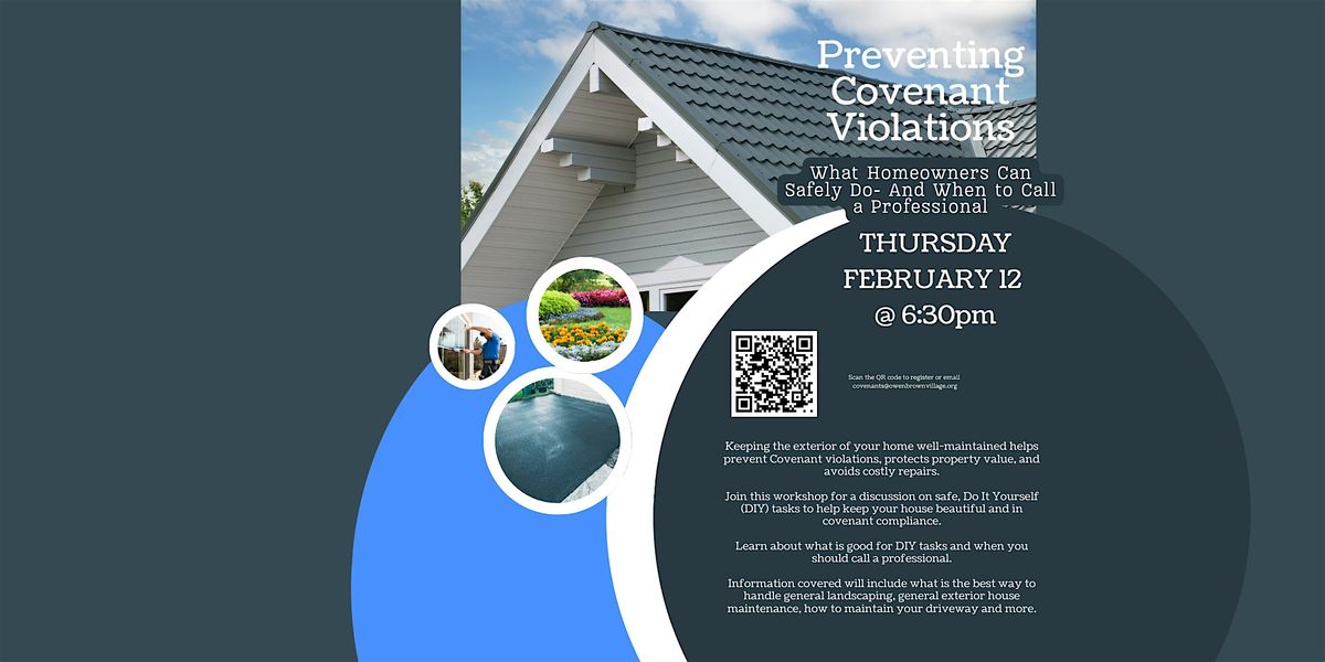 Join this workshop for a discussion on safe, Do It Yourself (DIY) tasks to help keep your house beautiful and in covenant compliance.