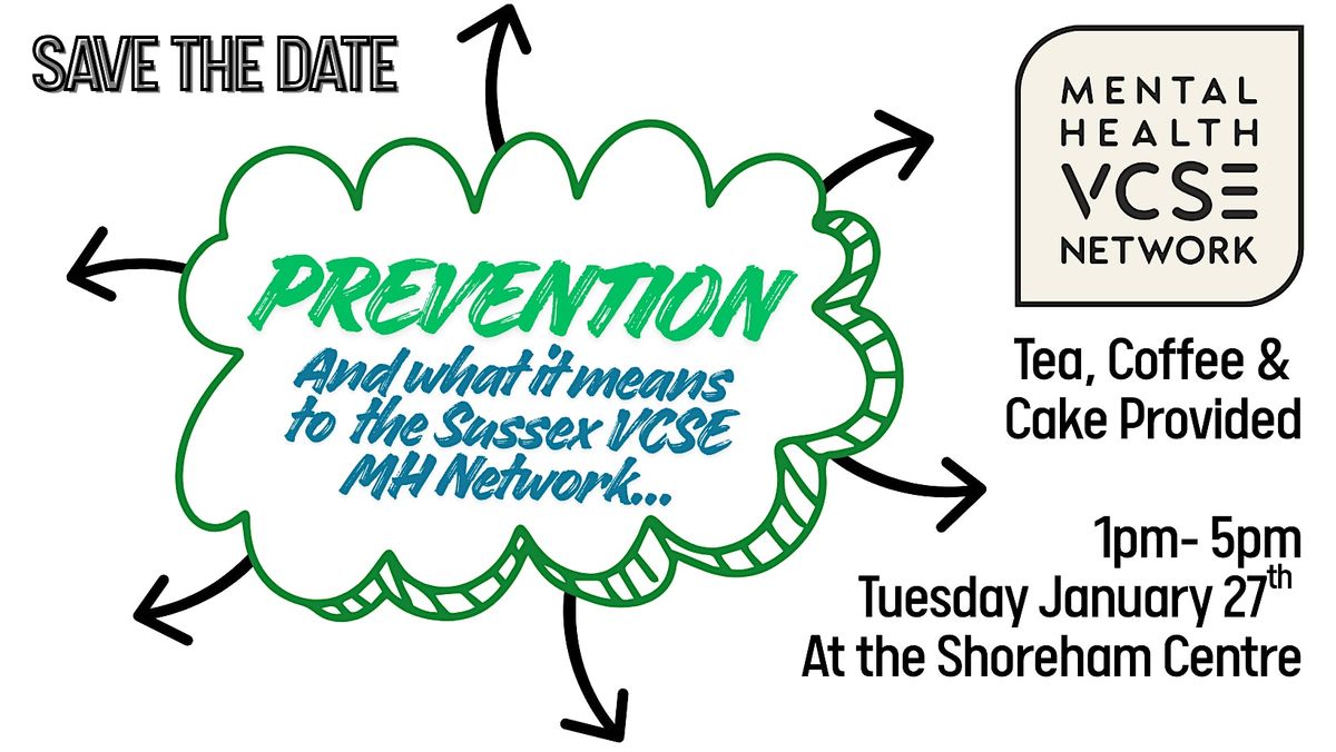 Quarterly Sussex VCSE MH Network Meeting at the Shoreham Centre. Speakers, Panel Discussion, and Workshops asking what is Prevention?