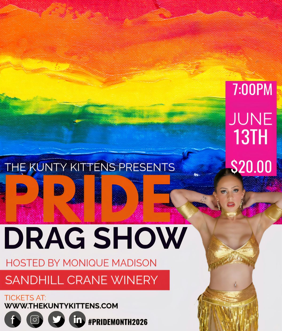 Join The Kunty Kittens to celebrate Pride month at Jackson's favorite hot spot Sandhill Crane Winery on Saturday June 13th at 7pm.