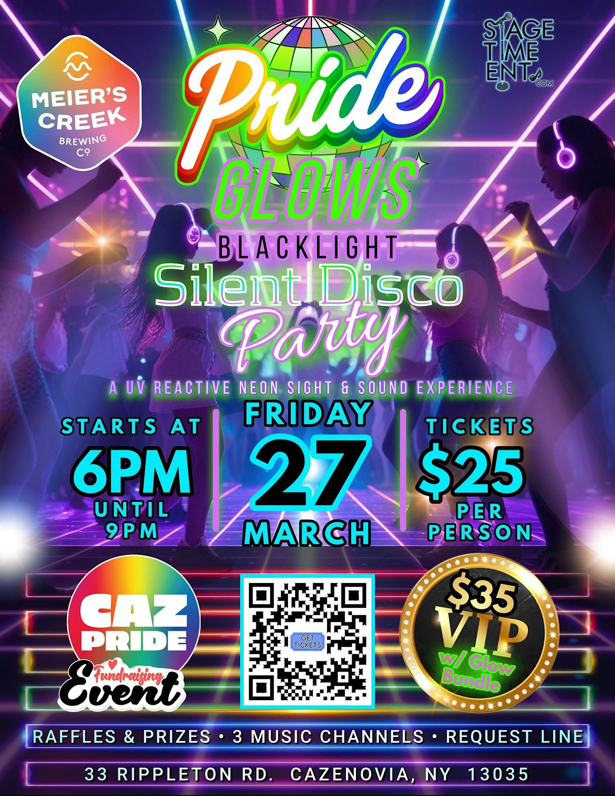Get ready for a night where PRIDE shines brighter than ever. PRIDE Glows Silent Disco is taking over Meier’s Creek Brewing Co. in Cazenovia, NY for an unforgettable UV-powered celebration of music, self-expression, and community.