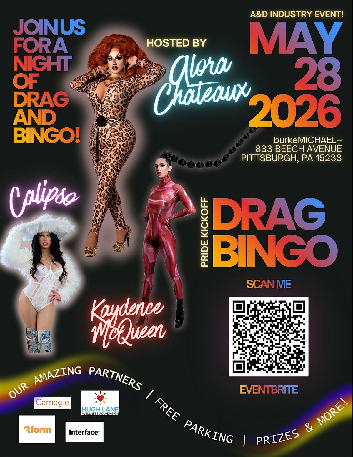 Join burkeMICHAEL+ for an unforgettable night of Drag Bingo—live and in person! Get ready to be dazzled by Alora Chateaux, Calipso, and Kaydence McQueen, bringing the laughs, the looks, and the energy all night long!