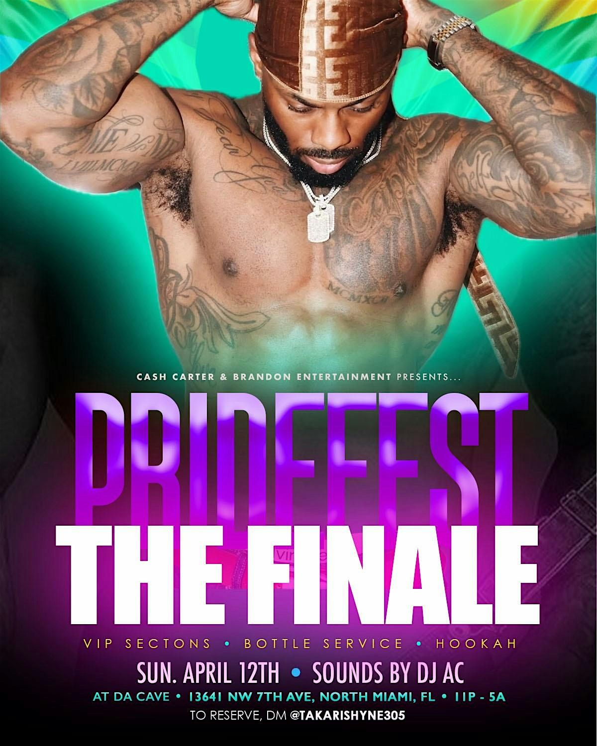 🚨 LISTEN UP! NEW VENUE ALERT! THIS SUNDAY WE’RE CLOSING OUT THE PRIDE-FEST WEEKEND IN MIAMI AT DA CAVE 😈 YUP, U HEARD RIGHT, WE’LL BE AT DA CAVE THIS SUNDAY FOR THE FINALE PARTY! HOSTED BY @mrcashcarter & BRANDON ENTERTAINMENT! WE BOUT TO TAKE IT UP ONE LAST TIME! WE PARTYING ALL NIGHT TIL 5AM!!! 😜