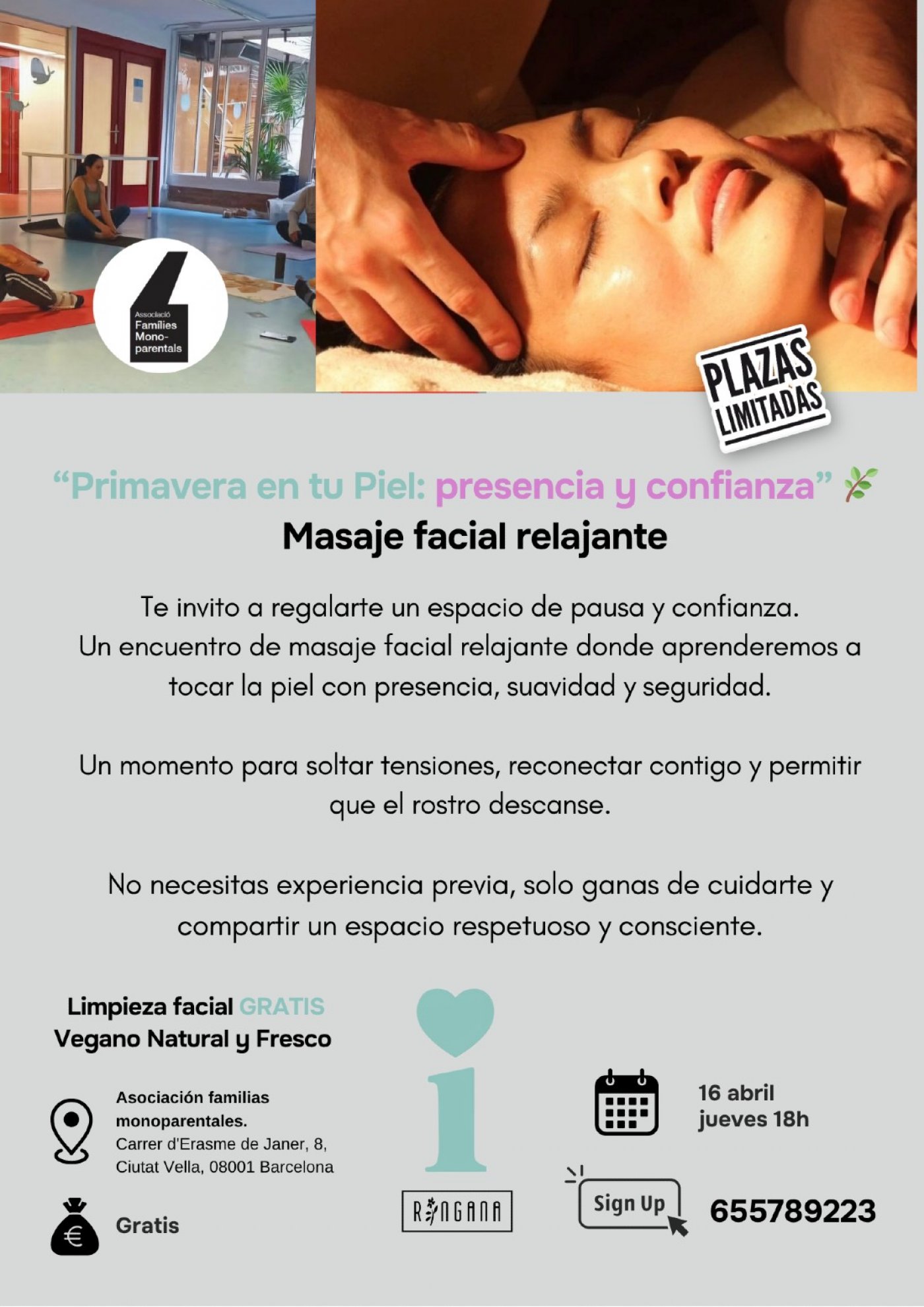 Un encuentro de masaje facial relajante donde aprenderemos a tocar la piel con presencia, suavidad y seguridad.