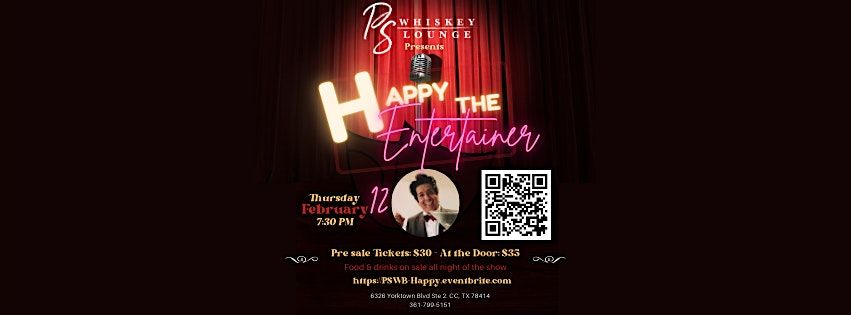 Get ready for a night of nonstop laughs at Prime Steakhouse Whiskey Bar on February 12, 2026, at 7:30 PM. Join us as Happy the Entertainer takes the stage, delivering high-energy comedy and crowd-favorite humor that guarantees a great time. Pair the show with our elevated dinner menu, handcrafted cocktails, smooth whiskey, and fine wines for the perfect night out. Make it a date night or gather your friends for an evening where great food, great drinks, and great comedy come together. All tickets are general admission only. Call (361) 799-5151 to reserve a table for a party of 4 or more guests if available.