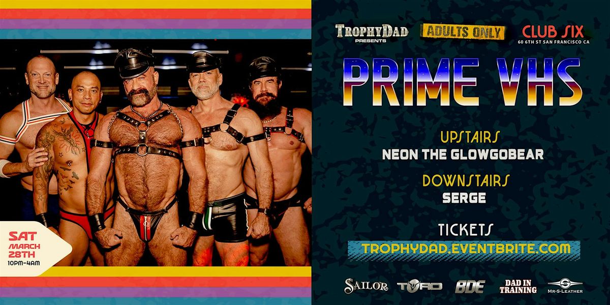 PRIME - VHS recreates the raw sexual atmosphere of the 1980s. From the dirty bookstore to the seedy truck stop, and the dancefloor that reeked of sweat and poppers, TrophyDad takes you back to the cruisy era when men would prowl for action. No apps, just eye contact and signals. PRIME returns to CLUB SIX with resident DJ Neon the Glowgobear upstairs and Berlin’s DJ Serge down below.